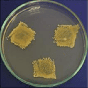 A continuación, se presenta una imagen de referencia que ilustra una de las tres réplicas impresas para diferentes cepas bacterianas como ejemplo para facilitar la comprensión de los valores mencionados: